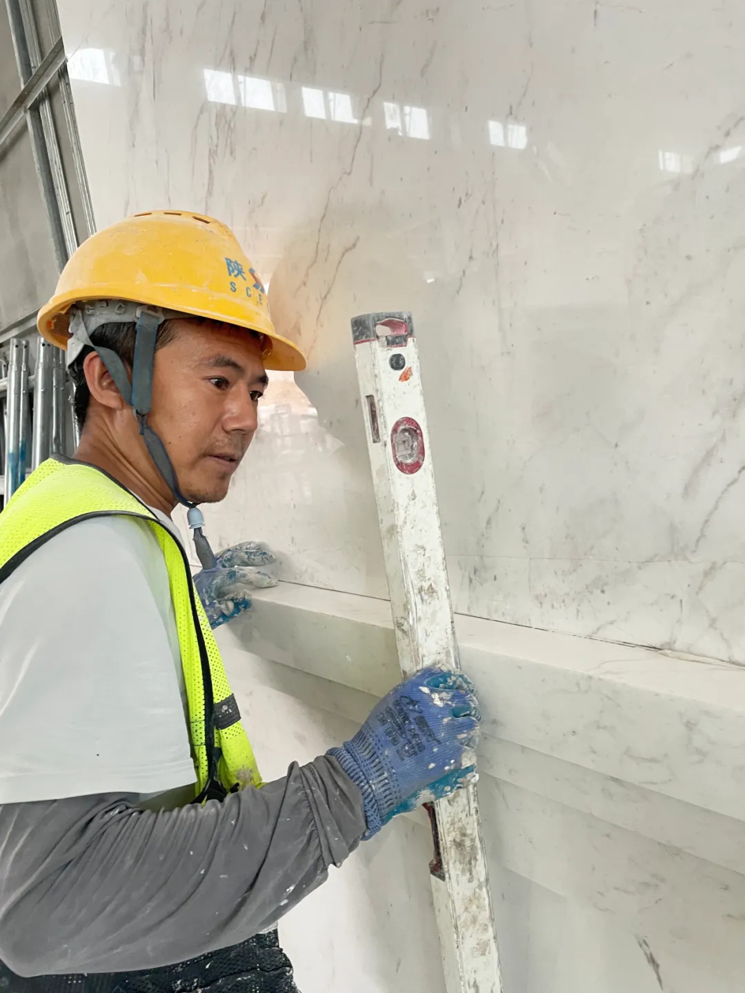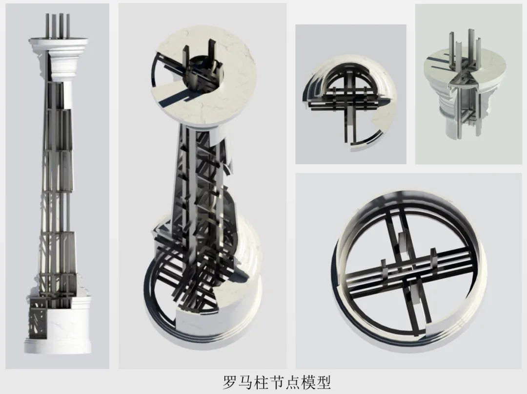 面对上述难题,项目团队以“策划先行、样板引路、过程控制、一次成优”为核心原则,根据实际施工进度灵活调整材料进场计划,对重要石面材料安排专人专项驻厂跟进。针对重难点施工部位利用动漫、视频、BIM等数字模拟方式进行技术交底,力求做到现场人员充分理解。并对珍贵石材采用针对性措施,例如针对罗马柱石材采用“高精度定位体系+改良干挂工艺+防污染专项处理”的方式确保石材安全安装落地。