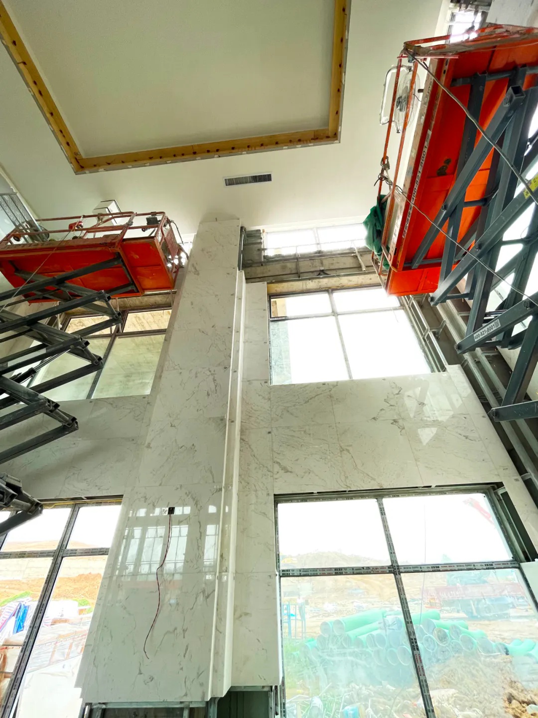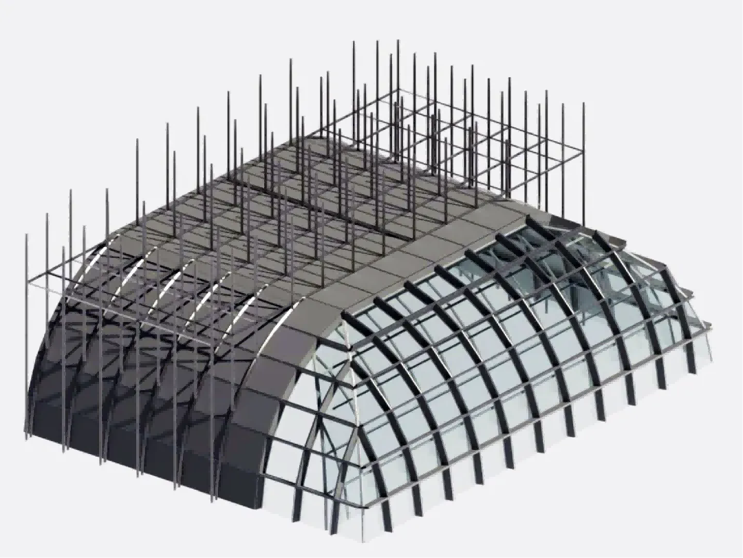 施工过程中,项目面临多重挑战,面层材料多为异形加工件,均需要提前排版定尺加工,加工周期长;艺术玻璃穹顶印花层与玻璃的热膨胀系数差异易导致温度变形,印花玻璃二次钢化可能导致图案变色脱落,三维曲面穹顶玻璃尺寸唯一,现场调整空间小。