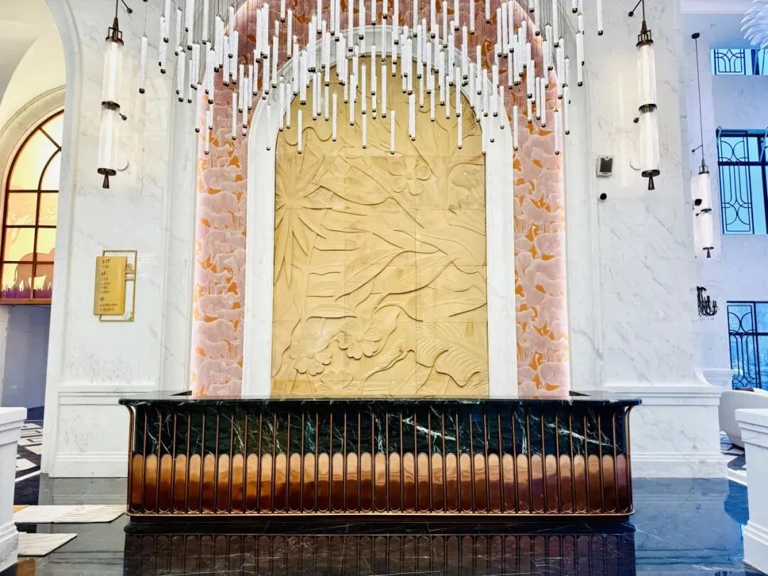 如今,酒店内部,一层大堂的艺术玻璃穹顶光影流转,负一层多功能餐厅服务台、自助餐台等定制家具。餐饮、会议、休闲等功能区域布局合理,每一处细节都彰显着鼎盛装饰公司“精雕细琢,共创臻品”的匠心追求。