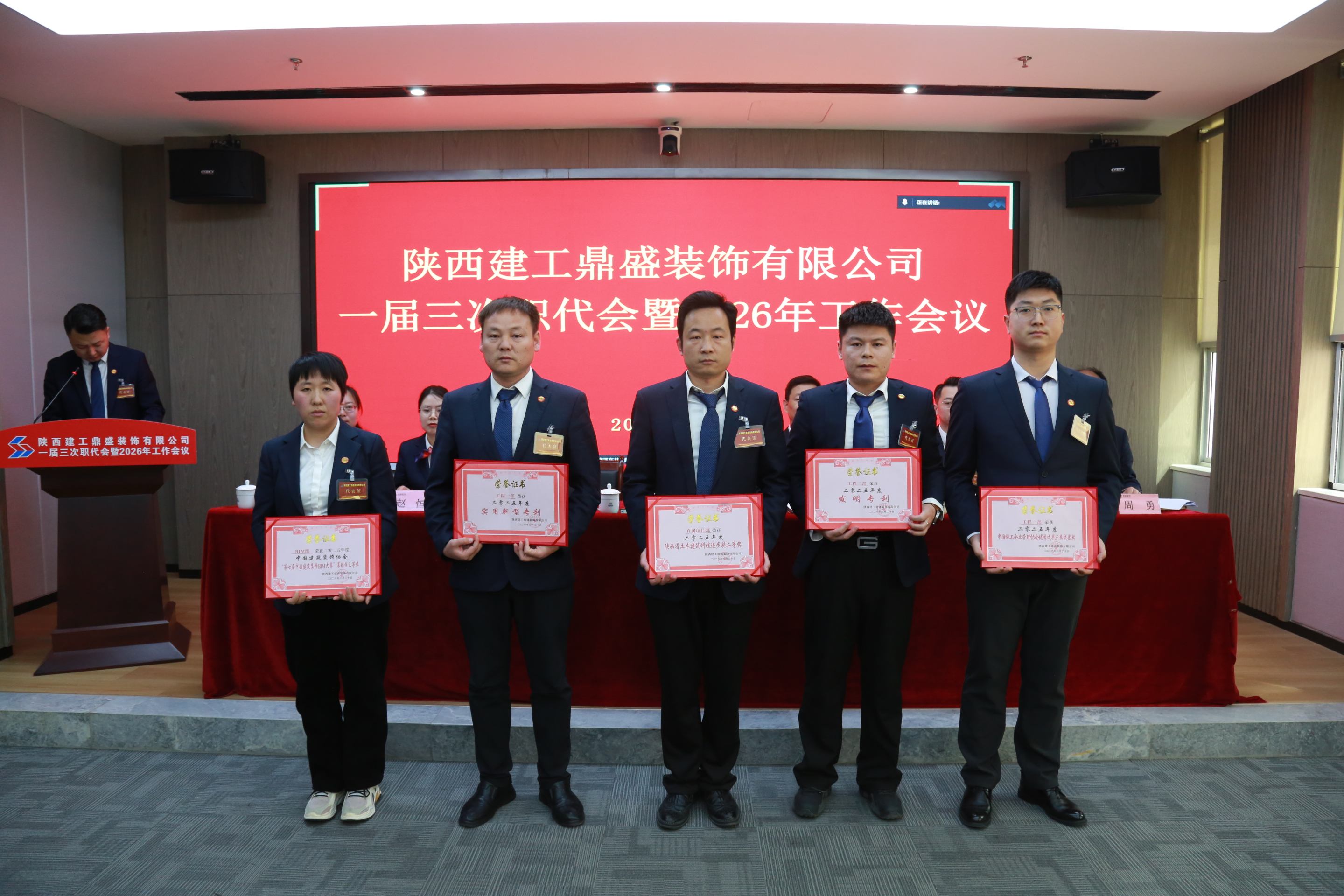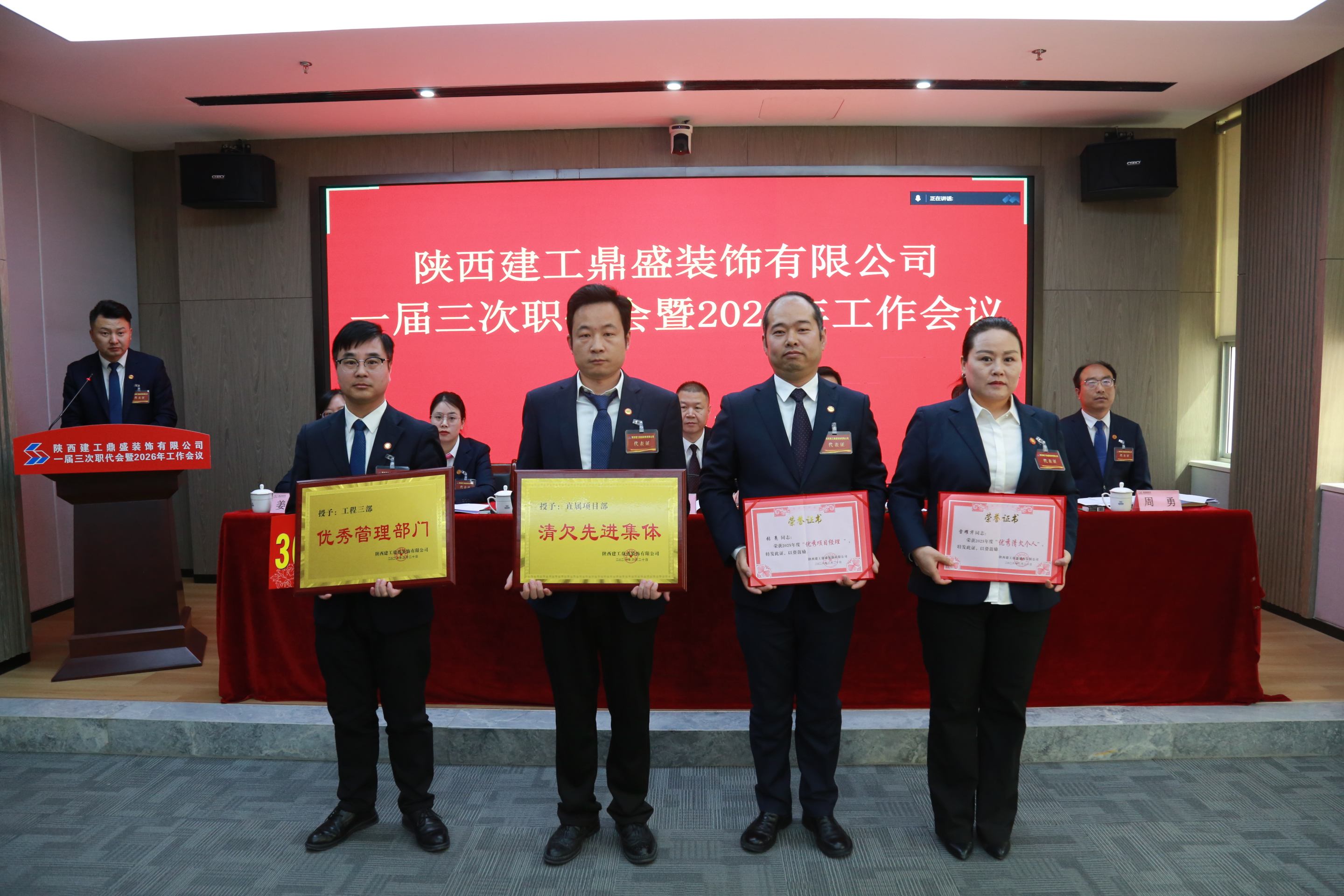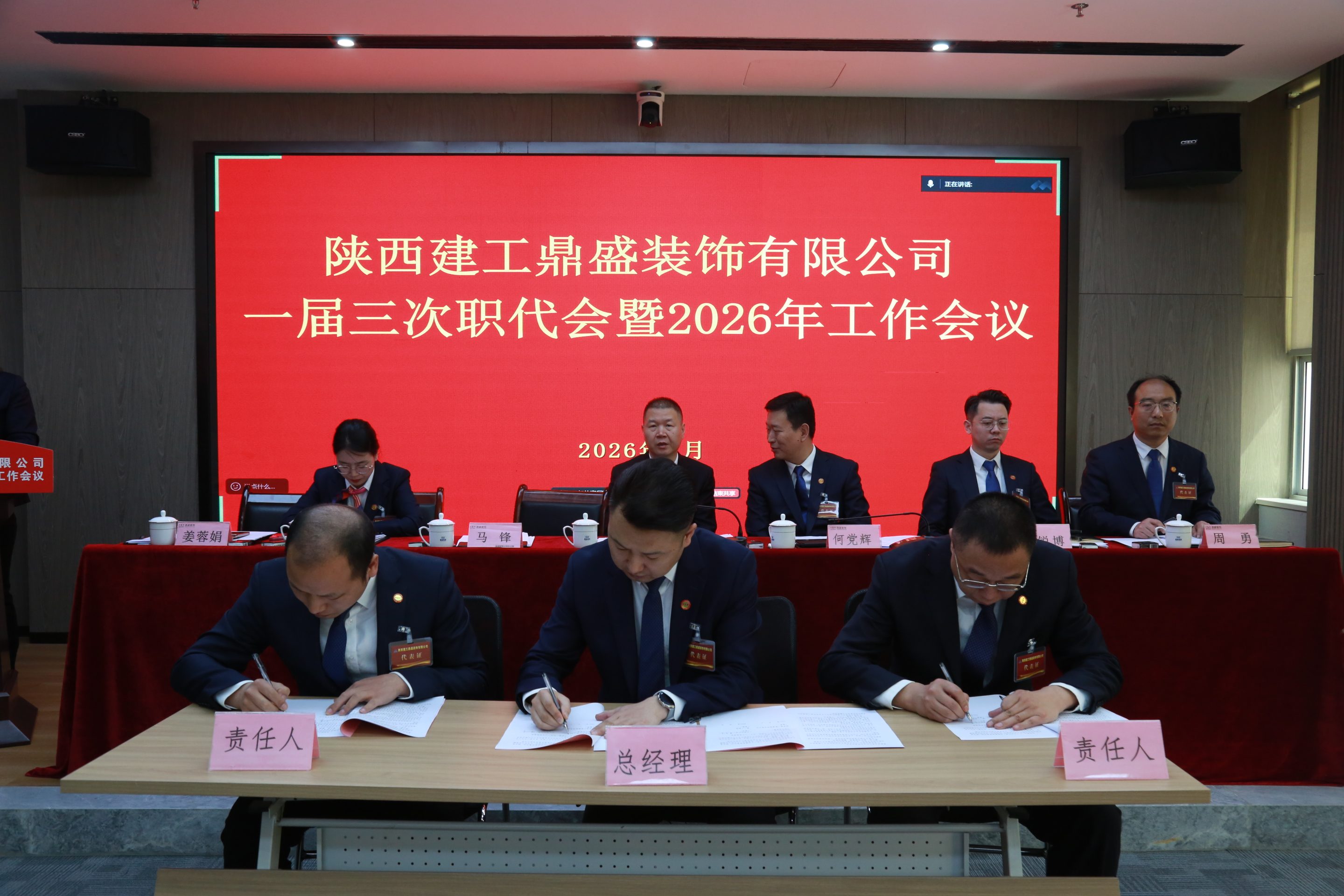 3月20日上午,陕西建工鼎盛装饰有限公司一届三次职代会暨2026年度工作会议顺利召开。会议全面系统总结了“十四五”时期发展成效与经验亮点,统筹谋划并部署了2026年各项重点工作和任务,为当前和今后一个时期企业高质量发展指明方向、明晰路径、压实责任。陕建装饰集团党委书记、董事长肖建军,集团副总经理、鼎盛公司党支部书记、董事长何党辉出席会议。公司总经理马锋主持会议并作行政工作报告,工会主席姜蓉娟作工会工作报告。