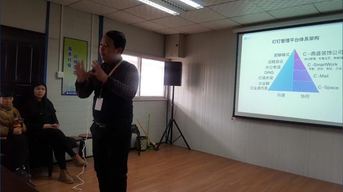 2018年2月6日上午,鼎盛装饰公司顺利召开《钉钉信息化》深化培训会,特邀钉钉企业顾问段嘉祥授课,公司全体职工参加。