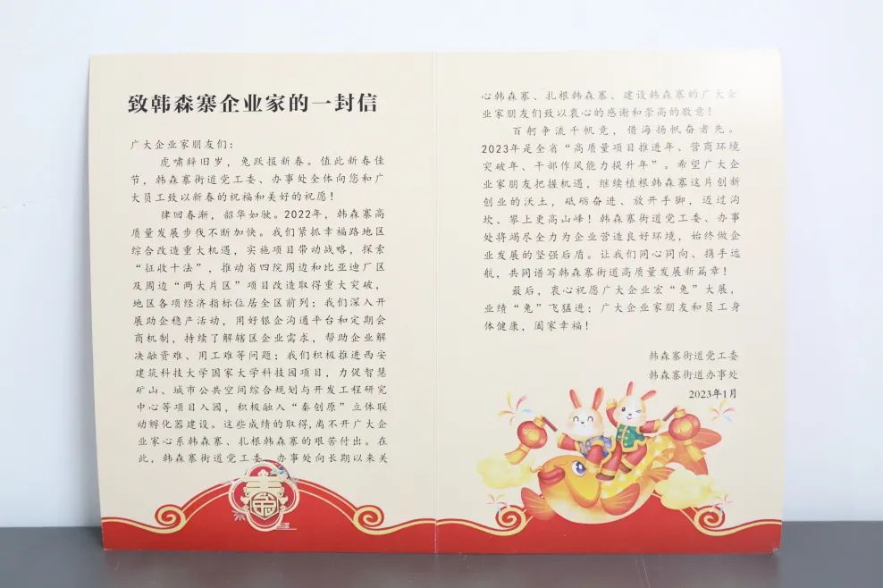 1月30日下午,新城区人大韩森寨街道工委主任兀宏政和东方社区书记谢艳华给鼎盛装饰公司送来一面绣有“真情捐助爱心无限,热心公益企业楷模”的锦旗、一封新春贺信和一盆鲜花,向鼎盛装饰公司长期以来扎根和建设韩森寨地区以及在疫情防控工作中做出的努力和贡献表示感谢。