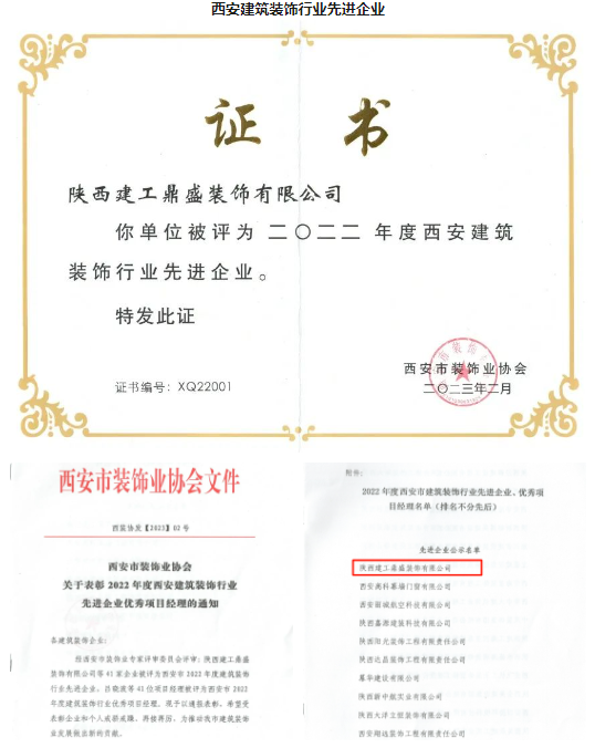 这些荣誉是对陕西建工鼎盛装饰有限公司的充分肯定,鼎盛装饰公司将继续坚持“用心塑造装饰臻品”的企业使命,为西安市装饰行业发展做出更大的贡献!