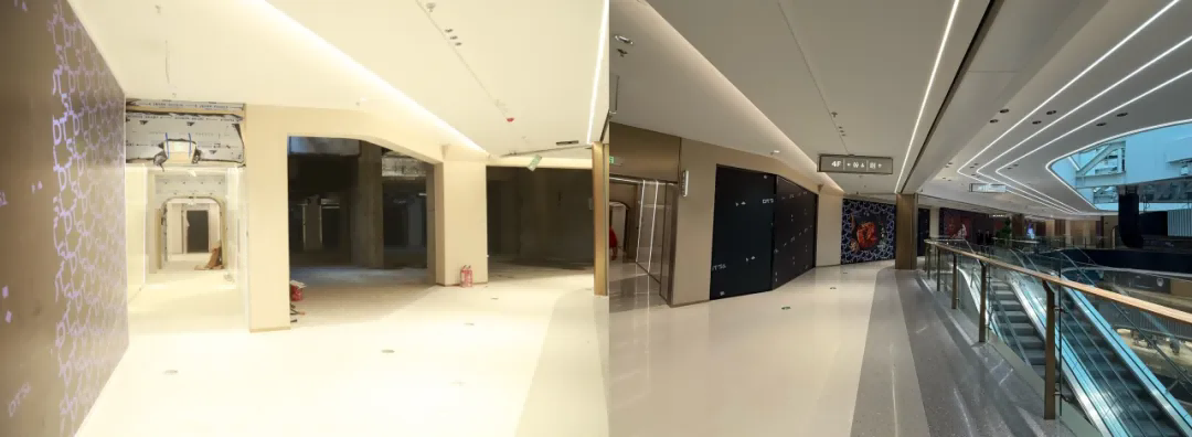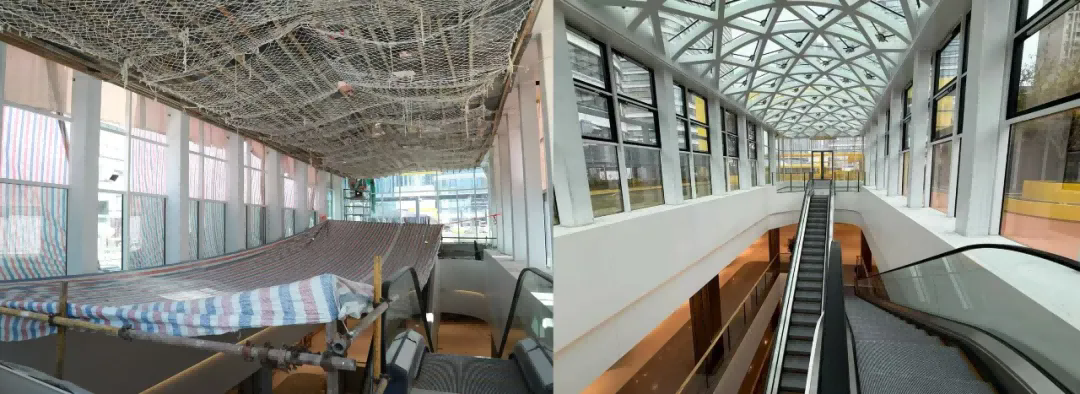 体育之窗·NMC中心位于高新板块商业核心区,前身为全运会赛事指挥与新闻媒体中心。公司施工范围包括一层、四层、全部中庭精装修施工,总建筑面积54310.42平方米。作为翻新改造的重点项目,项目部从进场前期策划到过程建设再到后期竣工,始终以专业实力与责任担当,全程护航这一商业地标从设计蜕变为实际。