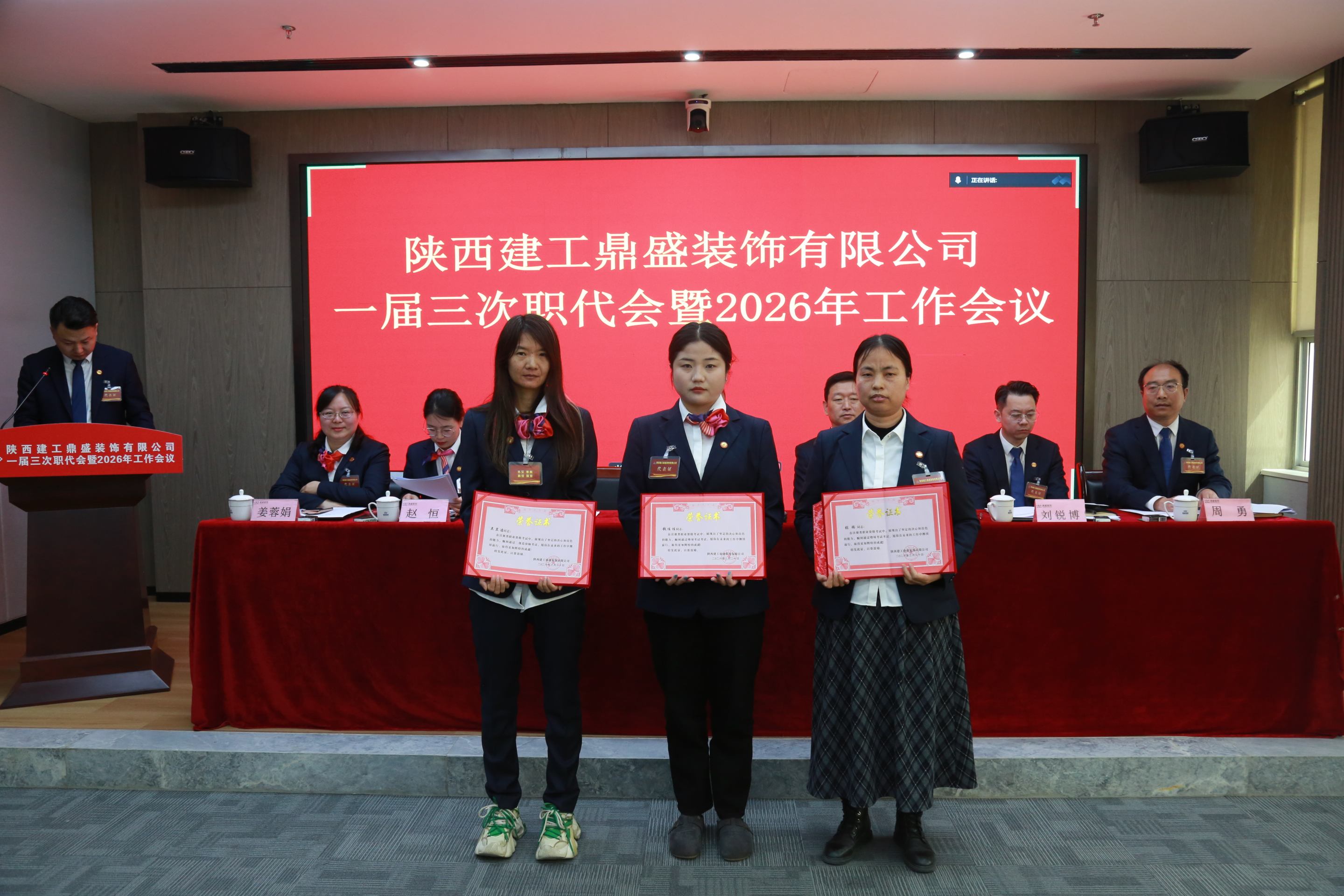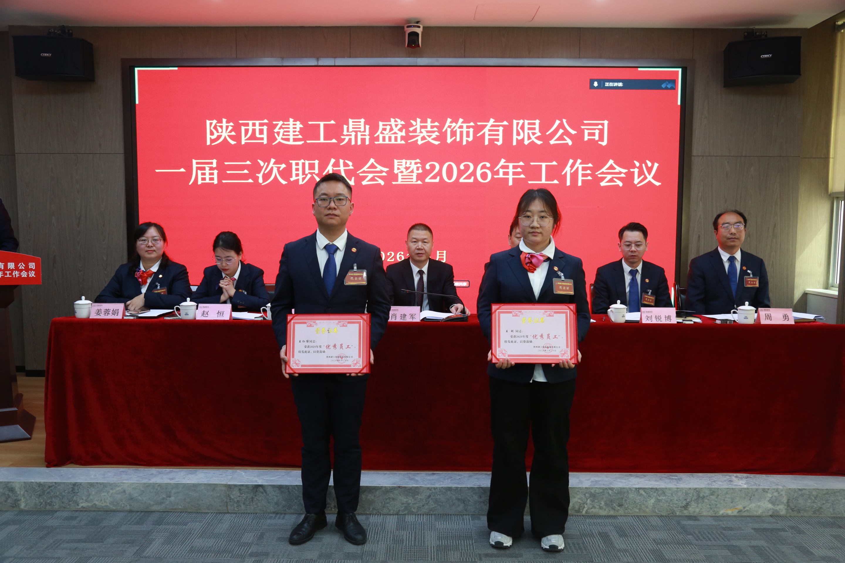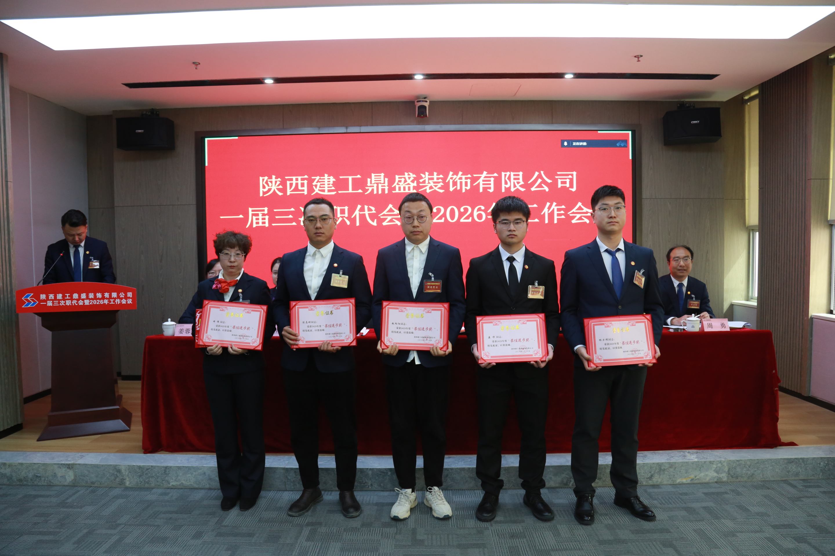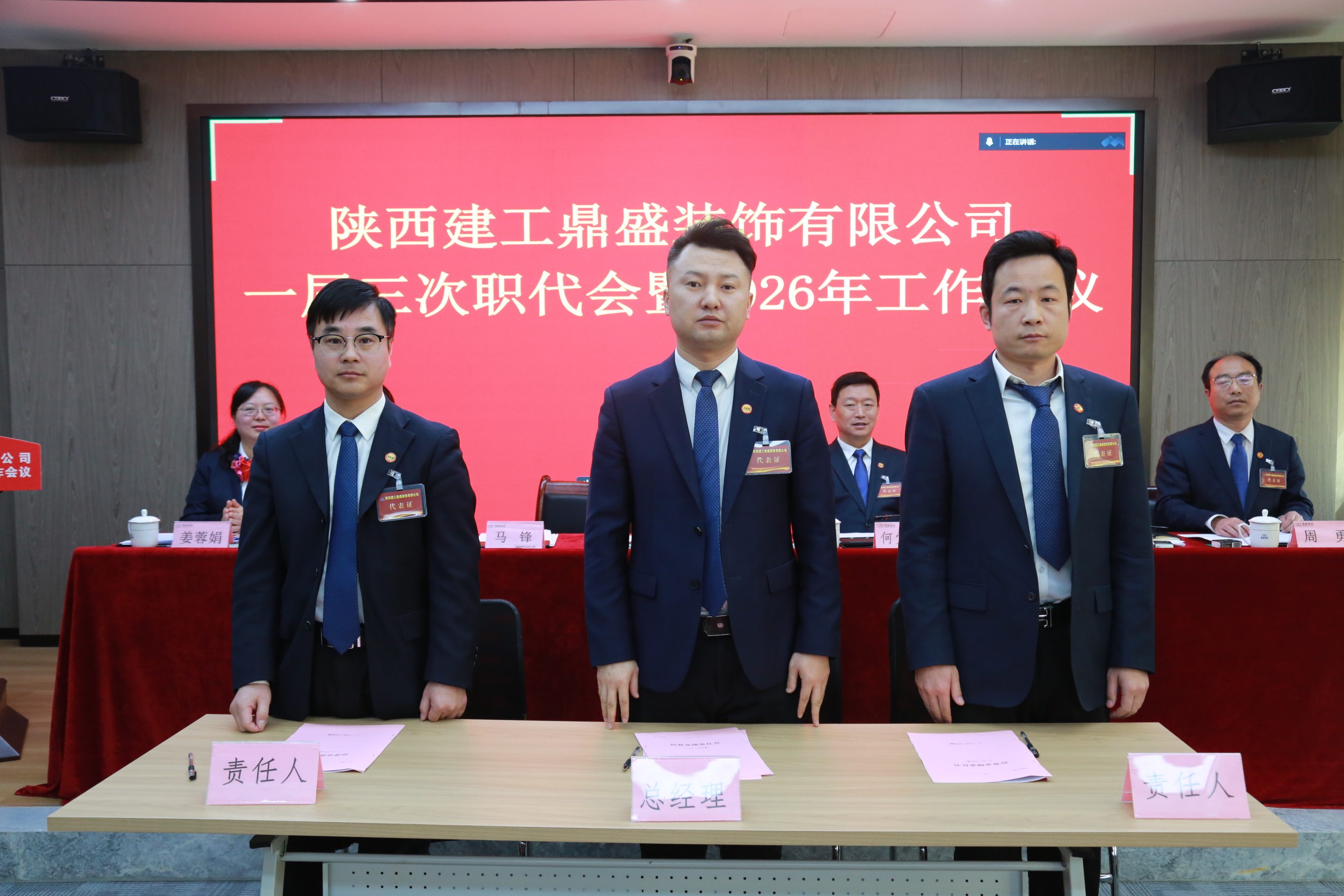 3月20日上午,陕西建工鼎盛装饰有限公司一届三次职代会暨2026年度工作会议顺利召开。会议全面系统总结了“十四五”时期发展成效与经验亮点,统筹谋划并部署了2026年各项重点工作和任务,为当前和今后一个时期企业高质量发展指明方向、明晰路径、压实责任。陕建装饰集团党委书记、董事长肖建军,集团副总经理、鼎盛公司党支部书记、董事长何党辉出席会议。公司总经理马锋主持会议并作行政工作报告,工会主席姜蓉娟作工会工作报告。