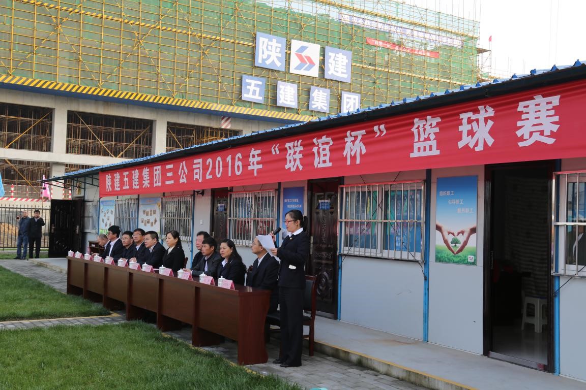 10月30日上午8:30“联谊杯”篮球赛在三公司项目部开幕。本次篮球赛由陕建五建集团三公司举办。参加此次篮球赛开幕式的队伍有三公司,鼎盛装饰公司,海西亚装饰公司,十二公司,安装公司,省安装公司,凤天劳务公司,省机械化公司。