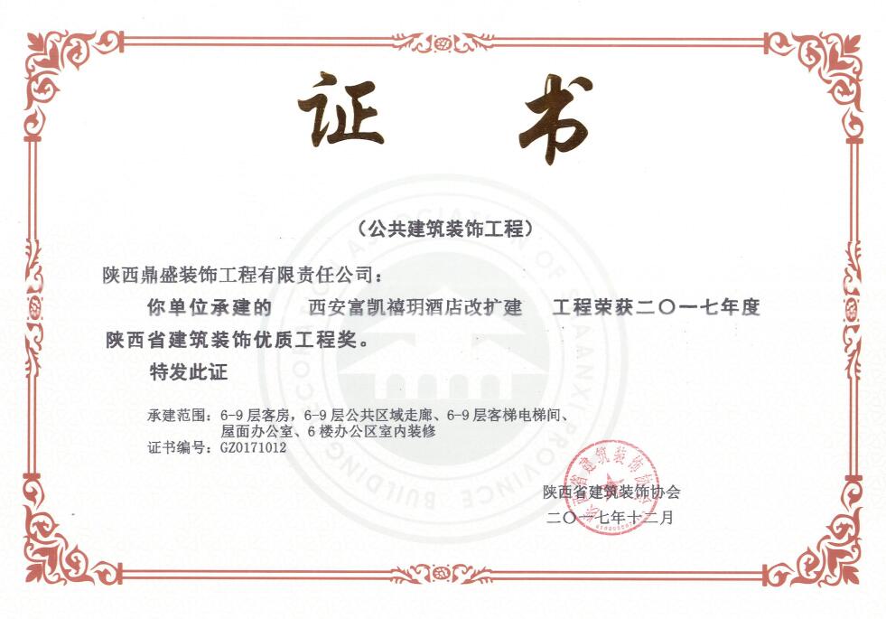 会上,协会领导对2017年工作进行了总结梳理,同时也提出了2018年全省建筑装饰行业工作思路,并对2017年陕西省建筑装饰优质工程、优秀设计及优秀项目经理进行表彰与颁奖。鼎盛装饰公司喜获优质工程、优秀项目经理两项荣誉称号。