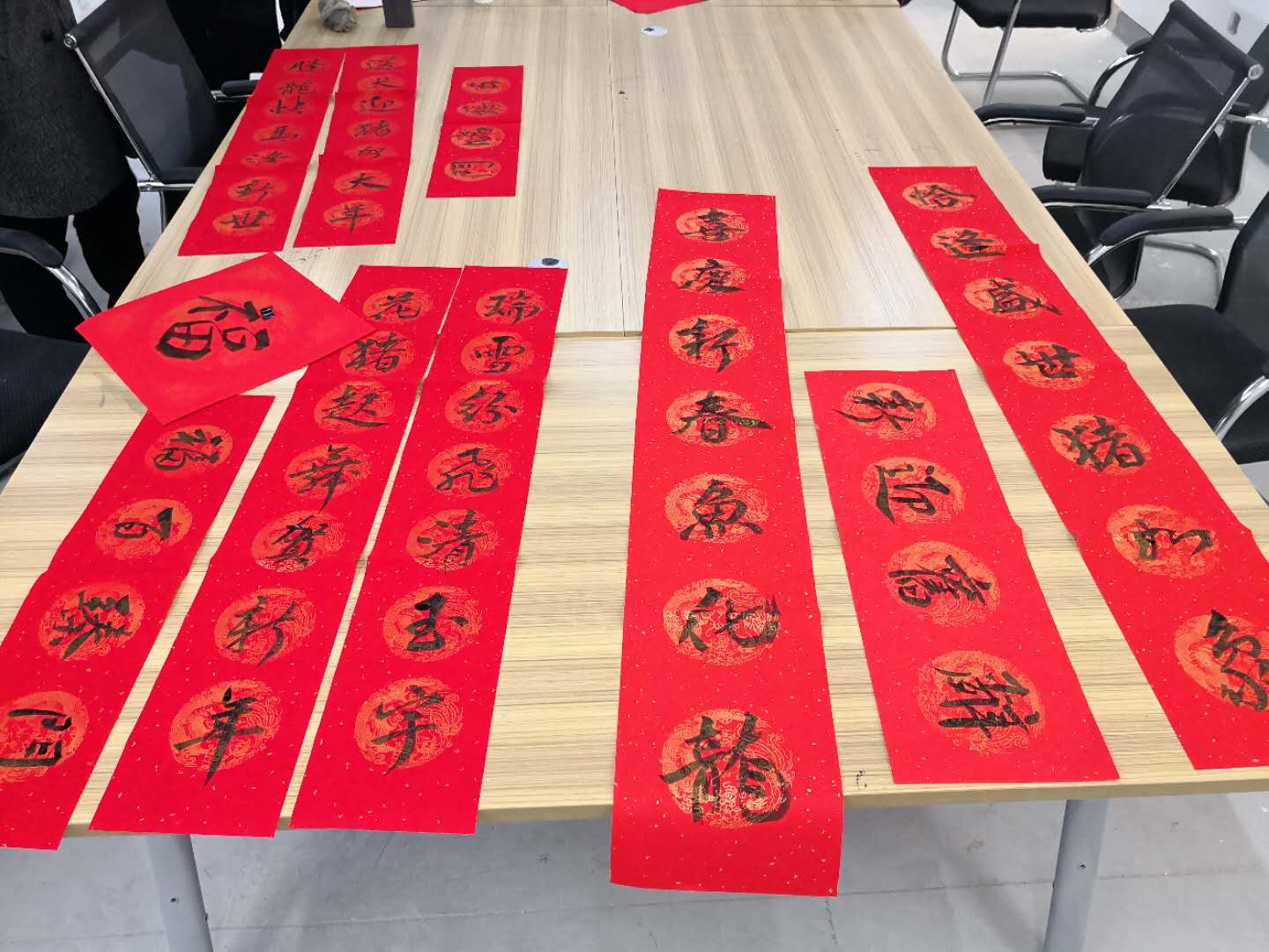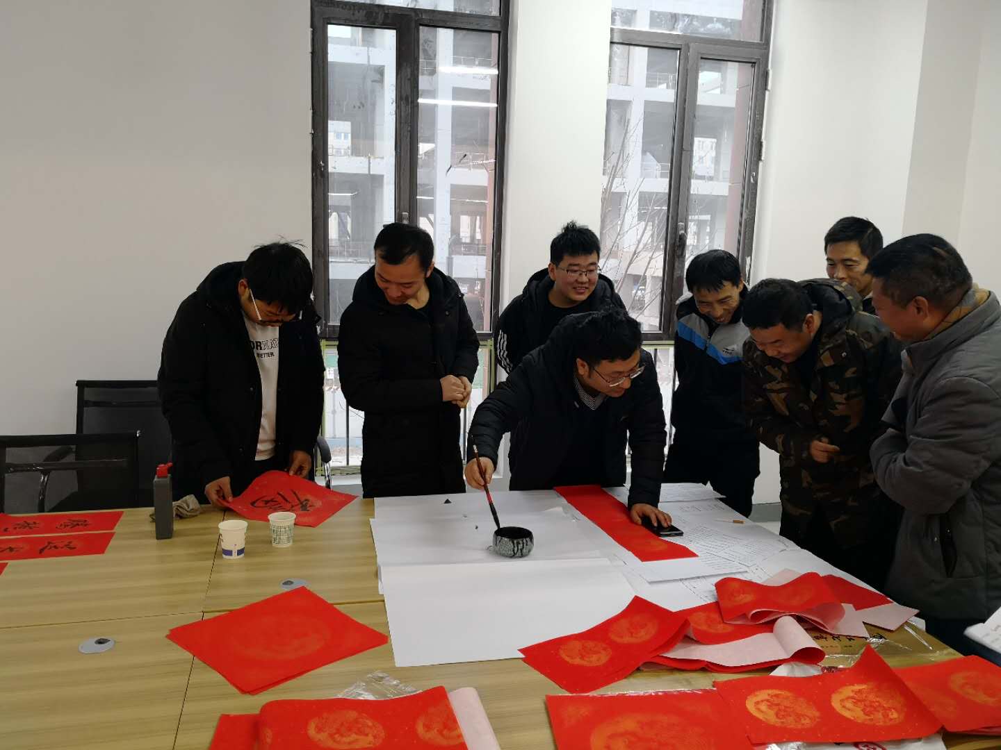这是继公司工会开展“写福送福,迎新年”活动之后,该项目部自发组织的弘扬传统文化的又一次书法迎春的活动。