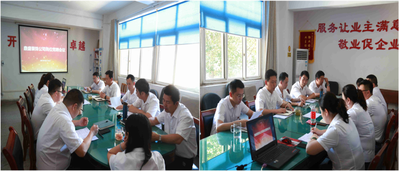 14日下午2点至晚上9点,鼎盛装饰公司部门管理岗位竞聘会议在二楼会议室顺利召开。公司党支部书记、总经理何党辉,副经理刘锐博,各部门负责人及参与竞聘人员共计19人参会。