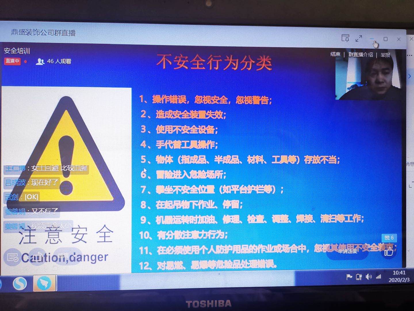 面对当前新型冠状病毒感染的肺炎疫情防控的严峻形势,鼎盛装饰公司积极贯彻落实中央和省委有关工作精神,严格执行集团公司下发的《关于做好新型冠状病毒肺炎防控工作的通知》精神,不集中开会、培训,充分利用网络办公。本次培训通过钉钉办公软件进行网络培训,各位培训老师在指定时间内进行网络授课,内容也较以往的常规学习有所突破,除了施工管理,安全管理,施工质量通病防治,施工技术资料报验规范,BIM技术应用等常项专业技术知识的学习,还增添了工程创优案例、成本控制、装修设计方案等优秀案例分享,希望在提升员工专业技能的同时,也能从其他精品工程中总结经验,取长补短,拓展大家的创新工作思路。