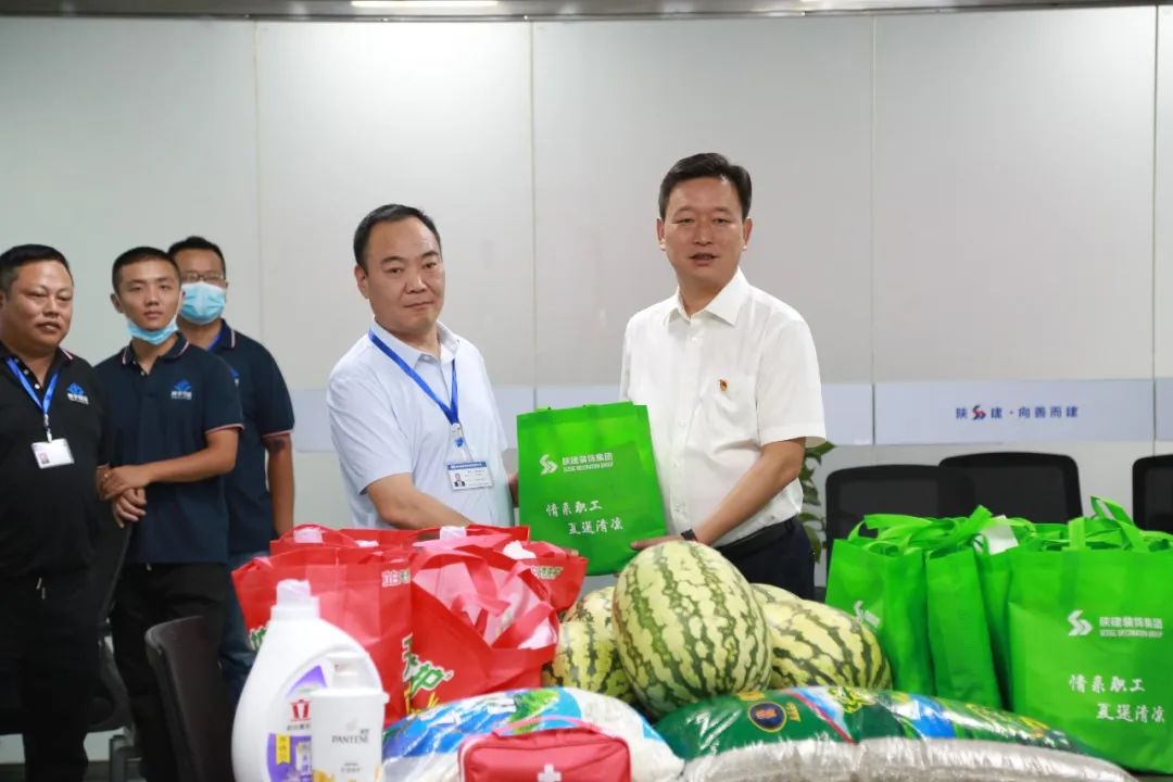 骄阳似火,酷暑难当。连日来的高温天气,给项目施工一线劳动者带来了极大“烤”验。为做好防暑降温工作,确保一线职工安全度夏,陕建装饰集团两级领导心系一线职工,于近期开展了夏送清凉、劳动保护监督检查工作,为奋战在一线的职工送去了丝丝清凉,表达了衷心的感谢,送上诚挚的关怀。