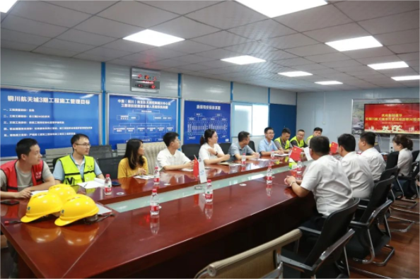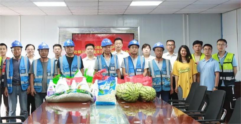 在铜川,慰问组听取了项目部技术负责人曹毅恒对该项目施工进度等情况的综合介绍后,刘毅与何党辉同项目部全体职工进行座谈交流。刘毅提出四点要求,一是提高站位,统筹安排,确保项目按时完工;二是严管质量,确保进度,用品牌赢得市场;三是抓好安全,防汛防疫,确保职工人身安全;四是关心职工,防暑降温,合理安排作息时间。刘毅指出,施工现场要坚持文明创建,进一步加强标识标牌规范化使用,深化“以现场换市场”的理念,做好市场开拓。