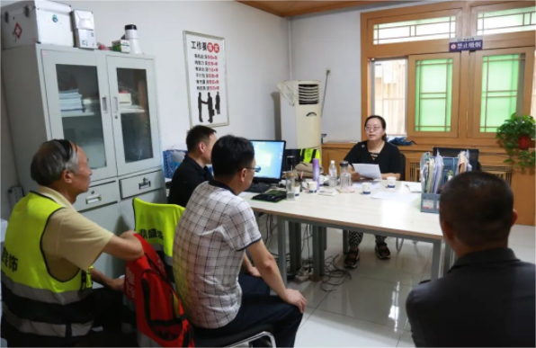 每到一处,公司副经理刘锐博、工会主席姜蓉娟与职工同志交流座谈,了解项目施工情况与夏季劳动保护情况。姜蓉娟组织项目部职工对《工会法》、《工伤认定办法》、《劳动保障监察条例》等法律法规进行学习,并对职工互助保险工作进行宣讲,使职工进一步了解自身的权益及保障。她还叮嘱大家一是要绷紧疫情防控工作的这根弦,坚决执行属地的疫情防控要求;二是落实好作息时间调整,避开高温时段,确保劳务人员及管理人员的安全工作;三是要求大家根据施工进度尽快参加职工体检;四是注意夏季饮食安全,保证身体健康。希望大家以健康的身心投入工作,助力陕建装饰集团发展。