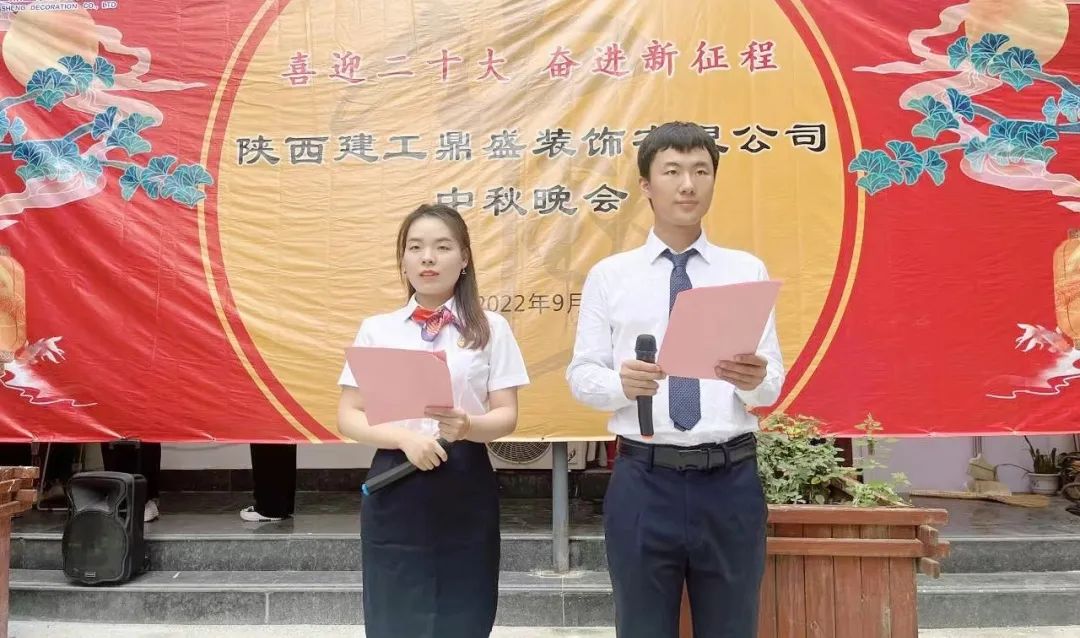 为了弘扬中华文化,大力推进社会主义核心价值体系进公司,9月8日下午,陕西建工鼎盛装饰有限公司“喜迎二十大 奋进新征程——我们的节日·中秋节”主题活动在公司院内成功举行。陕建装饰集团董事长吕书全,纪委书记、工会主席陈喜鸿,总工程师何党辉与鼎盛装饰公司干部、职工欢聚一堂,喜迎中秋。